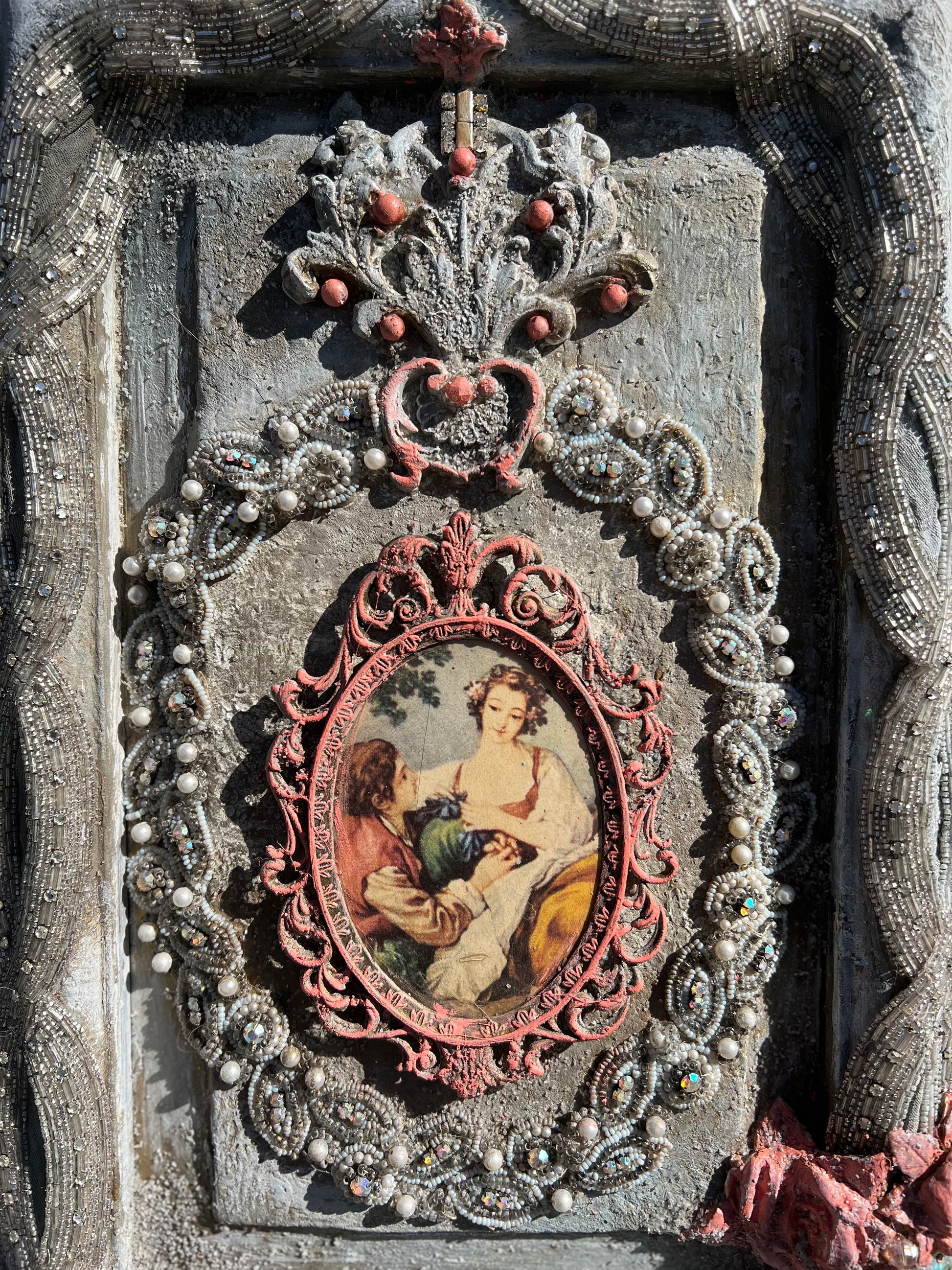 Surrounded By Love / Vintage Bejeweled Wall Art / Vintage Upcycled Treasures