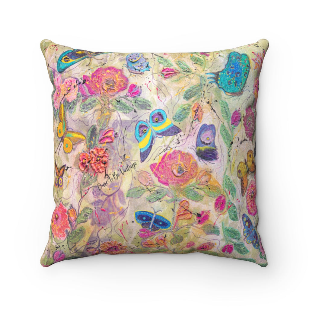 "You Give Me Butterflies" Faux Suede Square Pillow